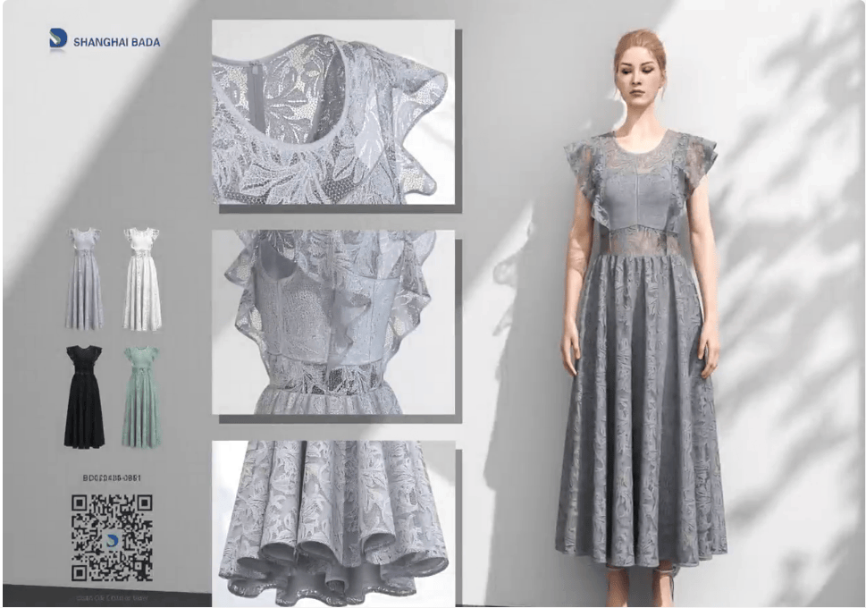 通过Style3D的一物一码系统,每件展品均可生成专属数字标识,采购商扫码即可查看3D建模、面料参数及出产溯源消息。企业同步使用3D视频手艺,使客户无需接触实物即可完成选款,展期客户征询量提拔40%。