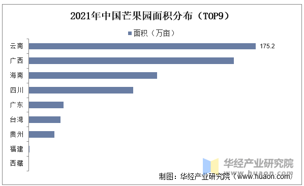中国芒果产区次要分布正在云南、广西、海南、四川、广东、、贵州等地,此中,云南、广西、海南以及四川产区的芒果园面积较着跨越其他产区。2021年云南、广西、海南以及四川产区芒果园面积别离为175。2万亩、158。4万亩、99。3万亩、80。7万亩,27。01%、16。93%、13。76%。